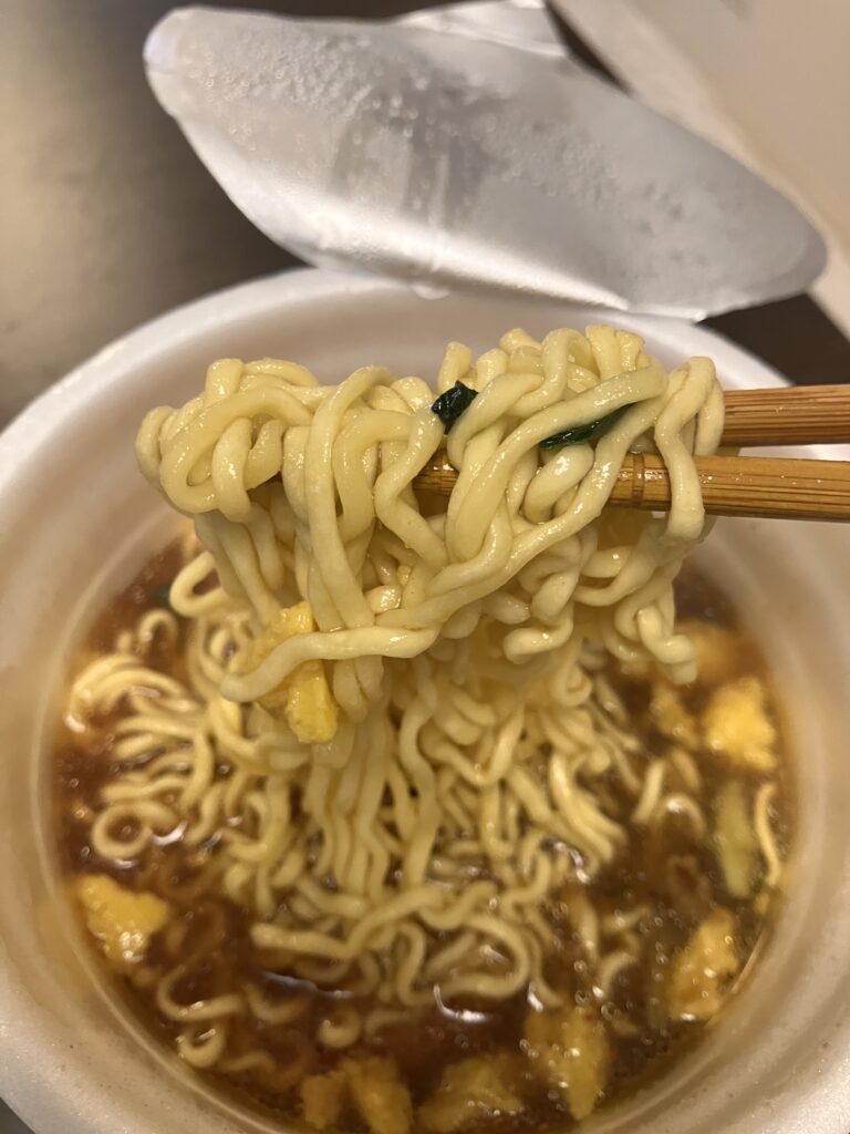 After pouring in hot water and waiting three minutes, the aroma that rose wasn’t especially distinctive—more like the usual comforting presence of instant ramen.
